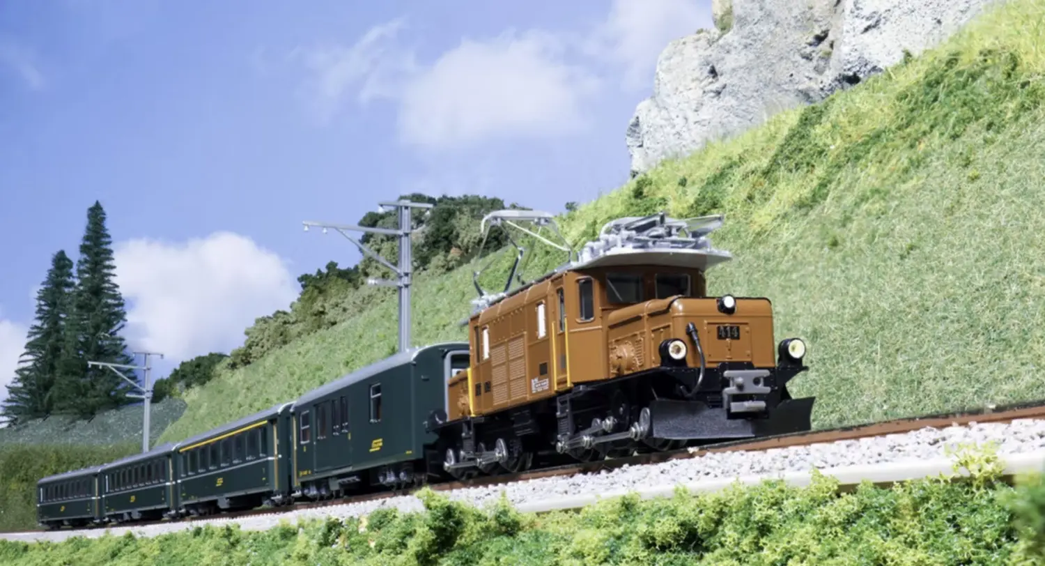 Rh.B - Ge 6/6-I 415 "Rhaetian Crocodile" with Green Passenger Cars 5-Car Set (DCC Sound) photo & video gallery: