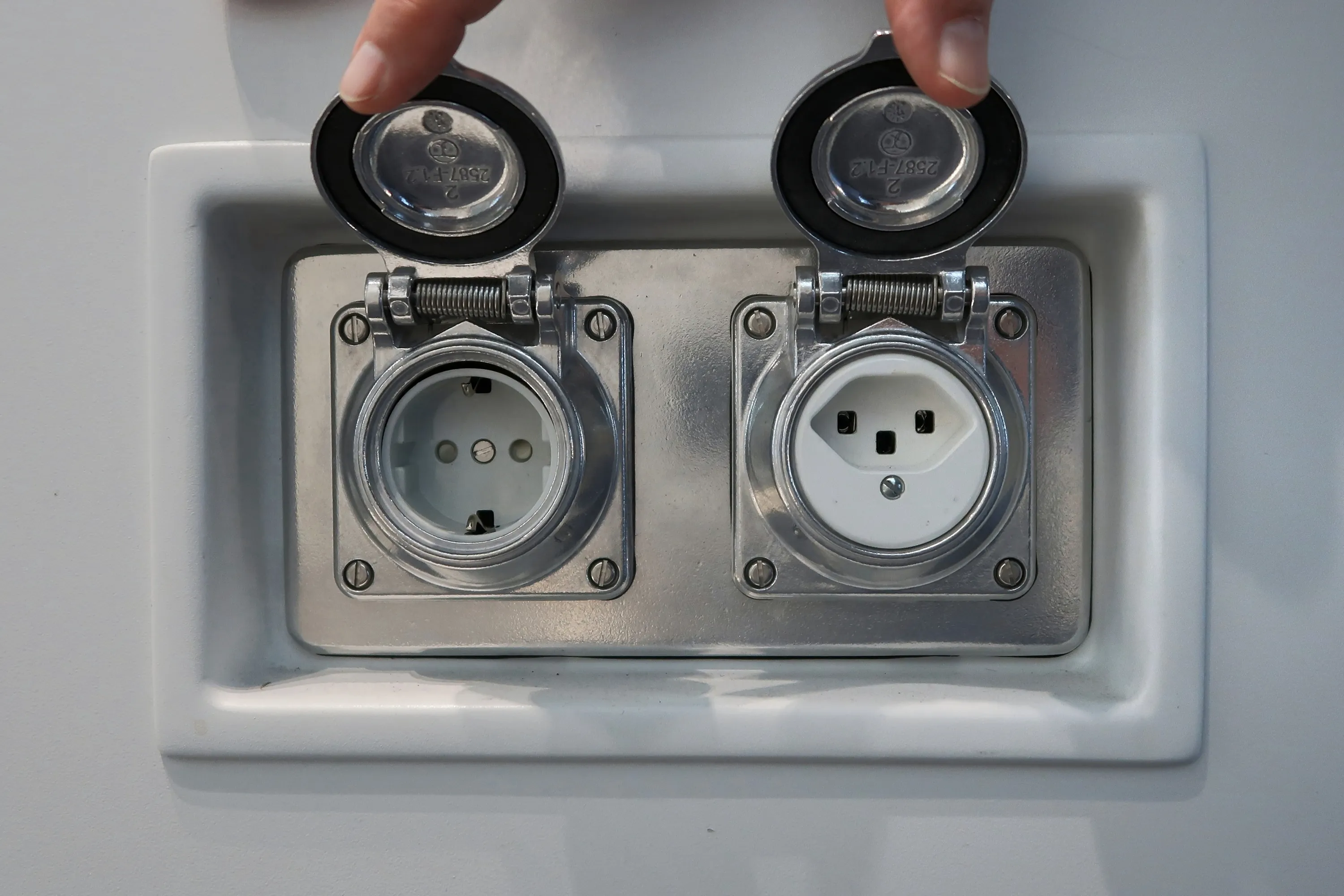 The sockets for the cleaning staff: left, type F for Germany and Austria, on the right type J for Switzerland. Both also fit the 2-pin plug type C.