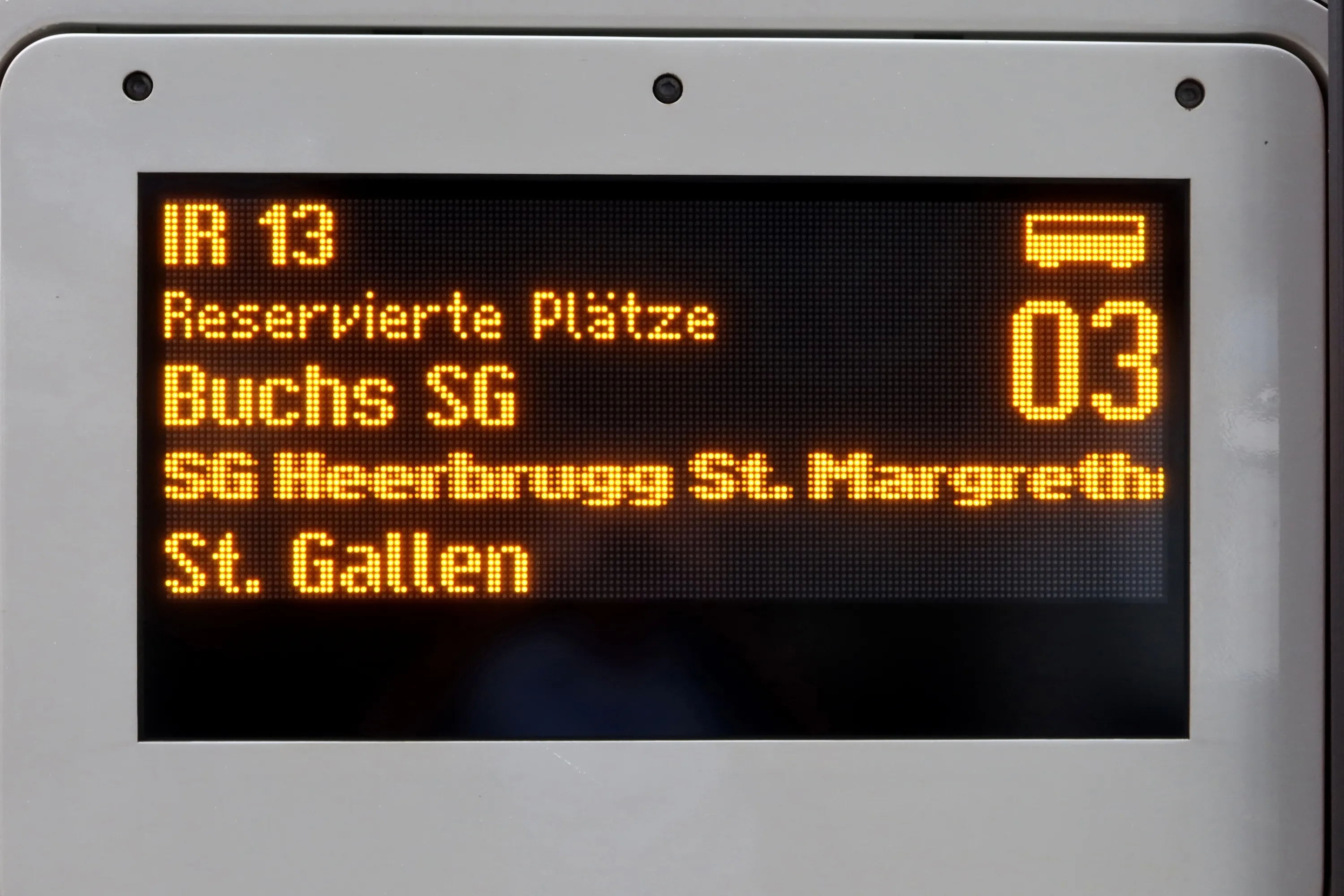 The outside display of the Twindexx trains. Note the mention for the electronic reservation system: "Reservierte Plätze".